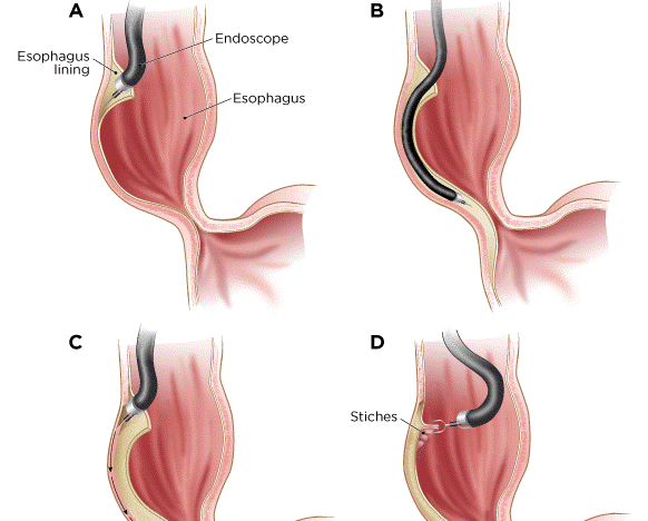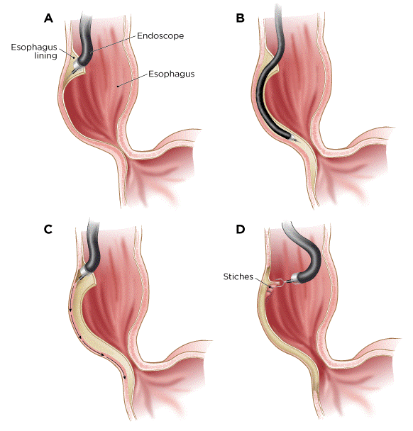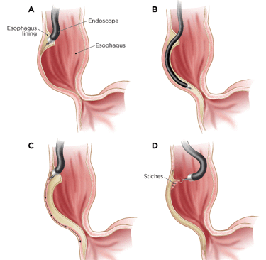 Técnicas endoscópicas de disección del tercer espacio (submucoso) para manejo de la acalasia y el divertículo de Zenker, que causan dificultad para tragar y regurgitación.